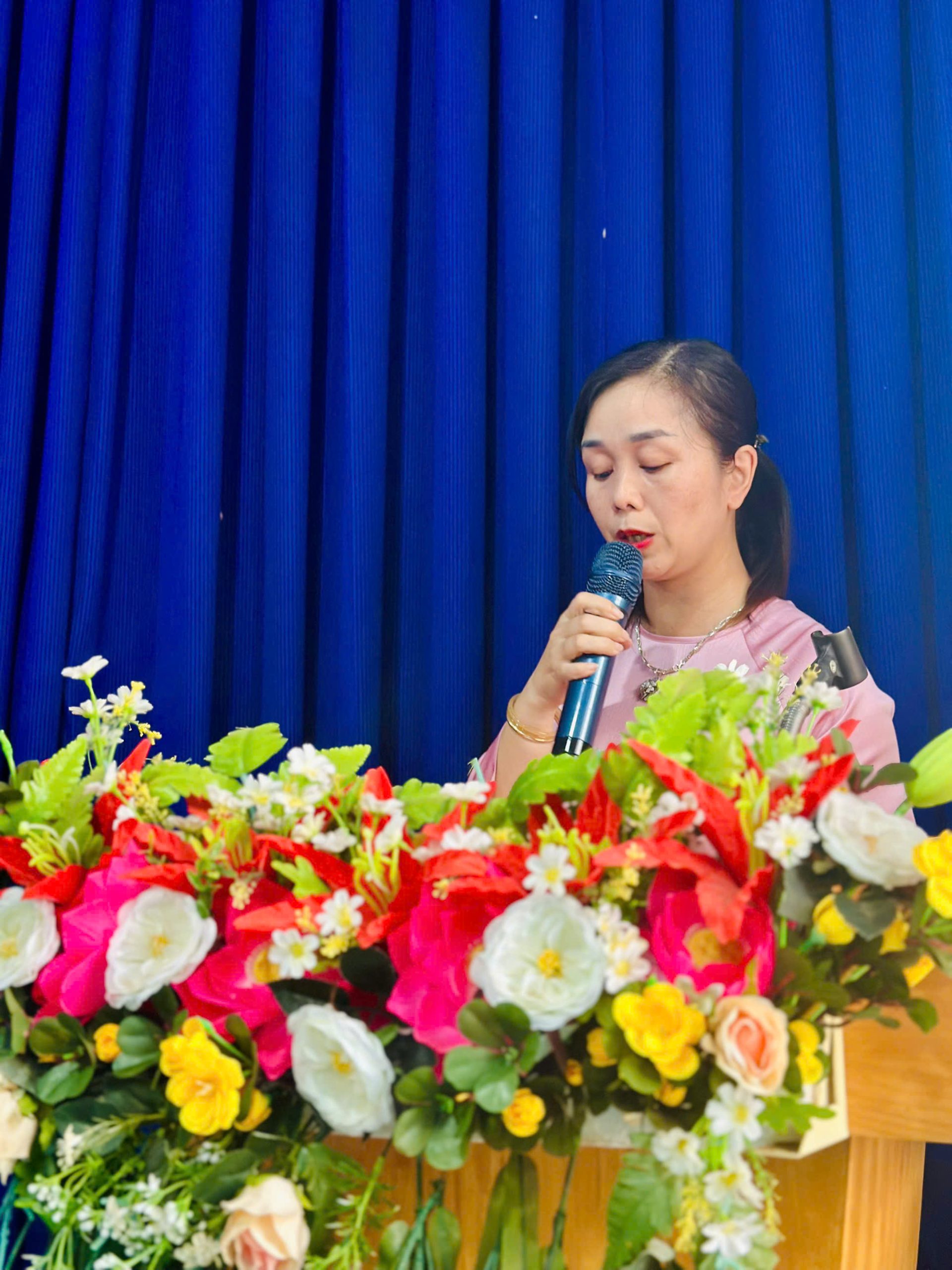 Cô Trần Thị Thuỷ – Phó hiệu trưởng nhà trường trình bày Báo cáo tổng kết năm học 2024 – 2025