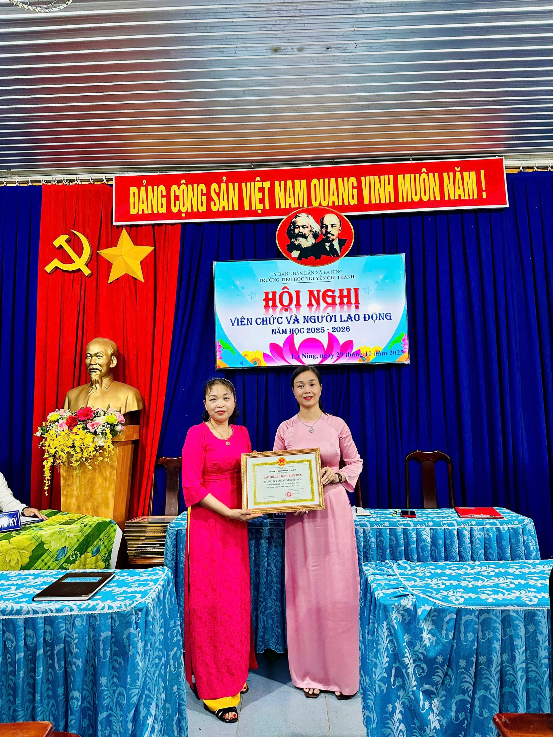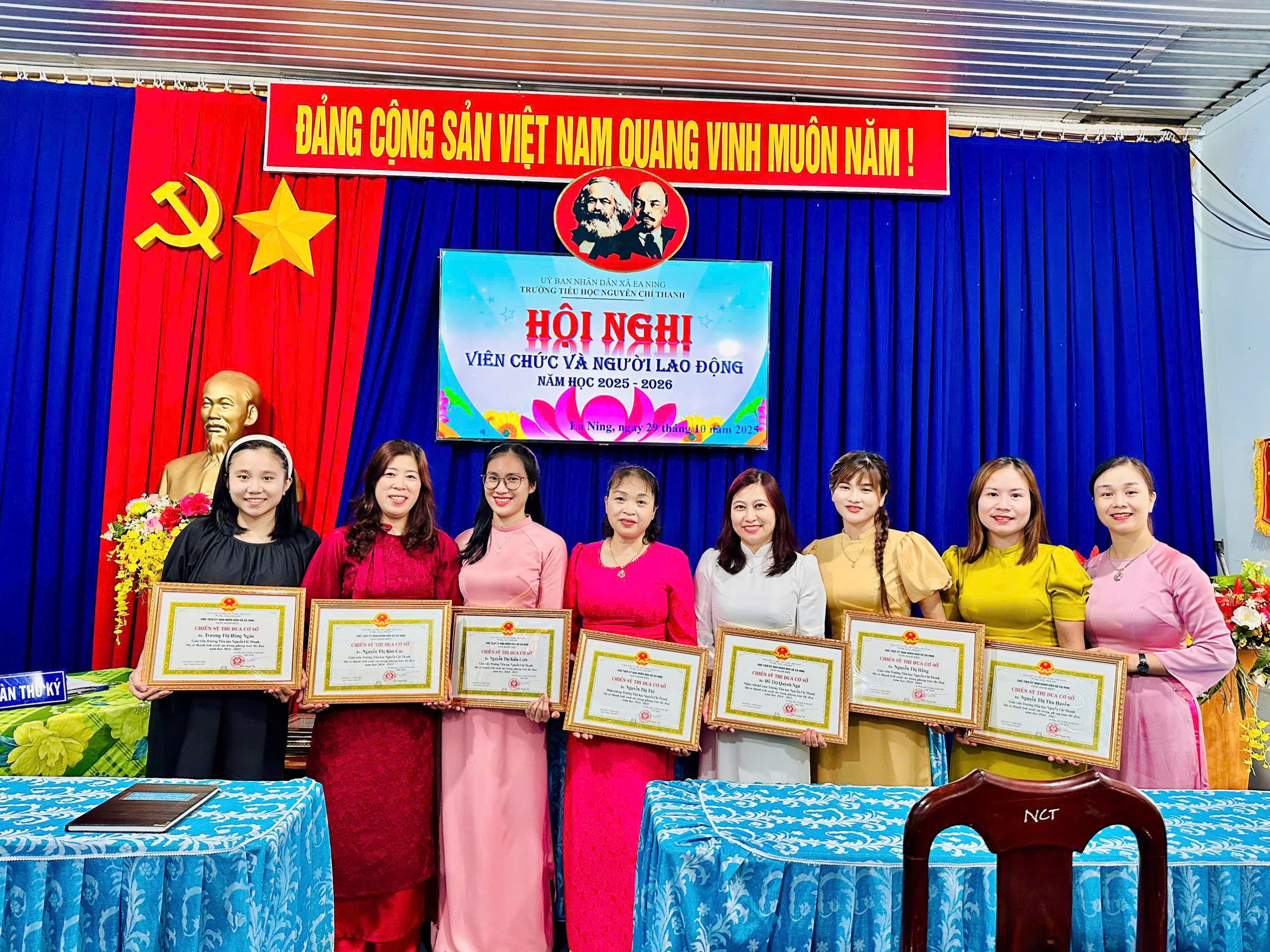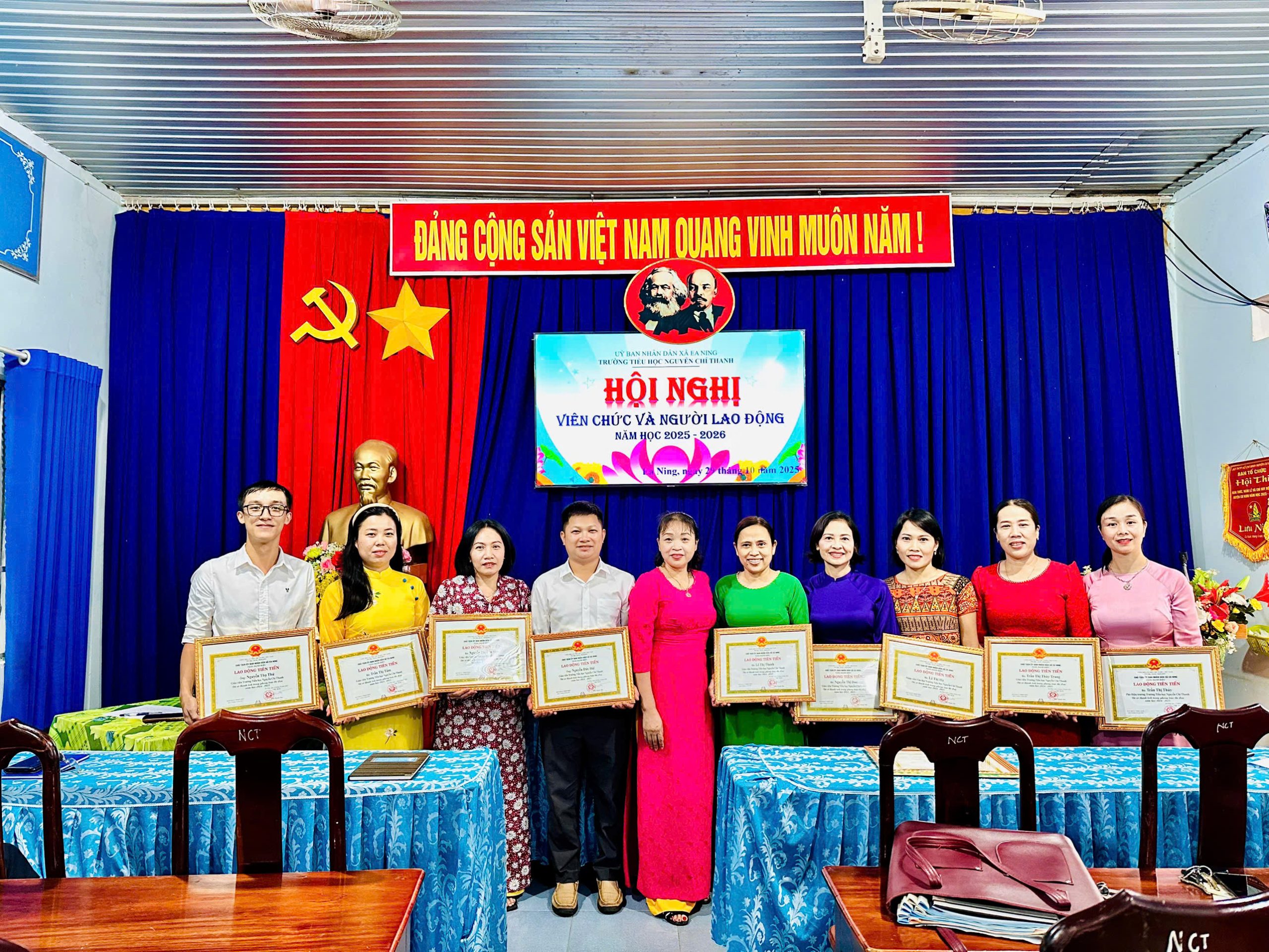 Ngày 29 tháng 10 năm 2025, Trường Tiểu học Nguyễn Chí Thanh – xã Ea Ning – tỉnh Đắk Lắk đã long trọng tổ chức Hội nghị cán bộ, công nhân viên chức năm học 2025 – 2026. Đây là sự kiện có ý nghĩa quan trọng, nhằm đánh giá kết quả hoạt động của năm học 2024 – 2025, đồng thời đề ra phương hướng, nhiệm vụ trọng tâm cho năm học 2025 – 2026.